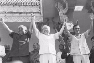 “នៅពេលគេនិយាយពីកិច្ចព្រៀងសន្តិភាពក្រុងប៉ារីស គេត្រូវនិយាយពីតួអង្គសំខាន់ពីរគឺ៖ តួអង្គព្រះមហាវីរៈក្សត្រ ព្រះបរមរតៈកោដ្ឋ សម្តេចព្រះនរោត្តម សីហនុ និងតួអង្គសម្តេចតេជោ ហ៊ុន សែន (ដោយមានការជ្រោមជ្រែងពីសហគមន៍អន្តរជាតិ)។ បើគ្មានការលះបង់របស់តួអង្គទាំងពីរនេះទេ កិច្ចព្រមព្រៀងនេះក៏មិនអាចកើតមានដែរ”។