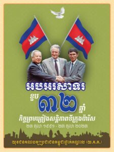 រីករាយខួបទី៣២ឆ្នាំ នៃកិច្ចព្រមព្រៀងសន្តិភាពក្រុងប៉ារីស (២៣ តុលា ១៩៩១ – ២៣ តុលា ២០២៣) 🕊ត្រូវបានផ្ដួចផ្ដើមឡើងដោយ ព្រះករុណាព្រះបាទសម្តេចព្រះ នរោត្តម សីហនុ ព្រះបរមរតនកោដ្ឋ និងសម្ដេចអគ្គមហាសេនាបតីតេជោ ហ៊ុន សែន ក្នុងគោលបំណងស្វែងរកសន្តិភាព ចាកផុតចេញពីសង្គ្រាម និងជម្លោះរ៉ាំរ៉ៃជាង៥០០ឆ្នាំជូនដល់ជាតិមាតុភូមិ និងប្រជាជាតិទាំងមូល។