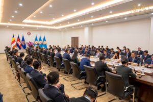 សិក្ខាកាមកម្មវិធីបណ្តុះបណ្តាលមន្ត្រីដឹកនាំវ័យក្មេងគណបក្សជាប់ព្រំដែន កម្ពុជា-ឡាវ-វៀតណាម នៅវិមាន៧មករា រាជធានីភ្នំពេញ។